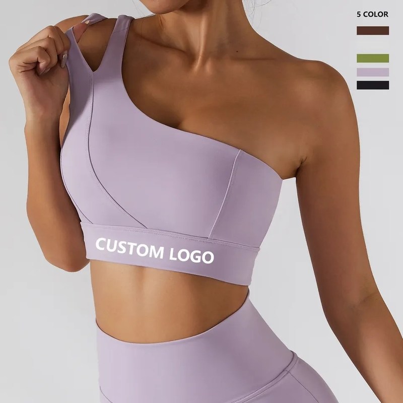 卸売 Sujetador デポルティボシングル斜めショルダーストラップジムフィットネス下着女性ヨガ高衝撃サポートチューブ